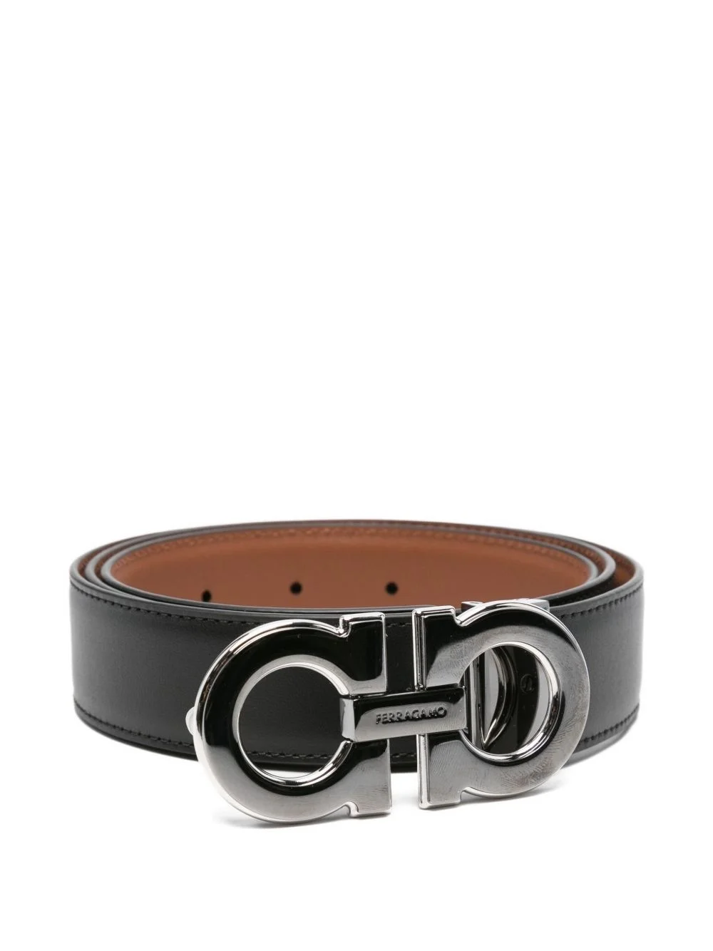 Gancini buckle leather belt Highlights - Black - Calf leather - Silver-tone gancini buckle - Reversible and adjustable Made in Italy Composition Calf Leather 100% SIZE & FIT Measurement Maximum Length 38.97 in(99 cm) Minimum Length 35.03 in(89 cm) WIDTH 1.18 in(3 cm)