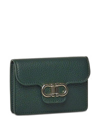 Gancini-buckle leather wallet Highlights - Dark green - Pebbled leather - Gancini clasp - Card slots - Compact design Made in Italy Composition Outer: Grained Calf Leather 100% SIZE & FIT Measurement LENGTH 4.3 in(10.9 cm) WIDTH 3.5 in(8.8 cm)