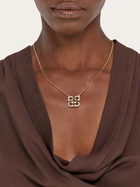 The golden Gancios of this pendant necklace are embellished with an array of micro crystals. Connected to each other with metallic plates, the squared outline hangs from a chain link necklace with custom clasp. - Composition: brass and crystals - Made in ITALY - Product code: 760867 785169