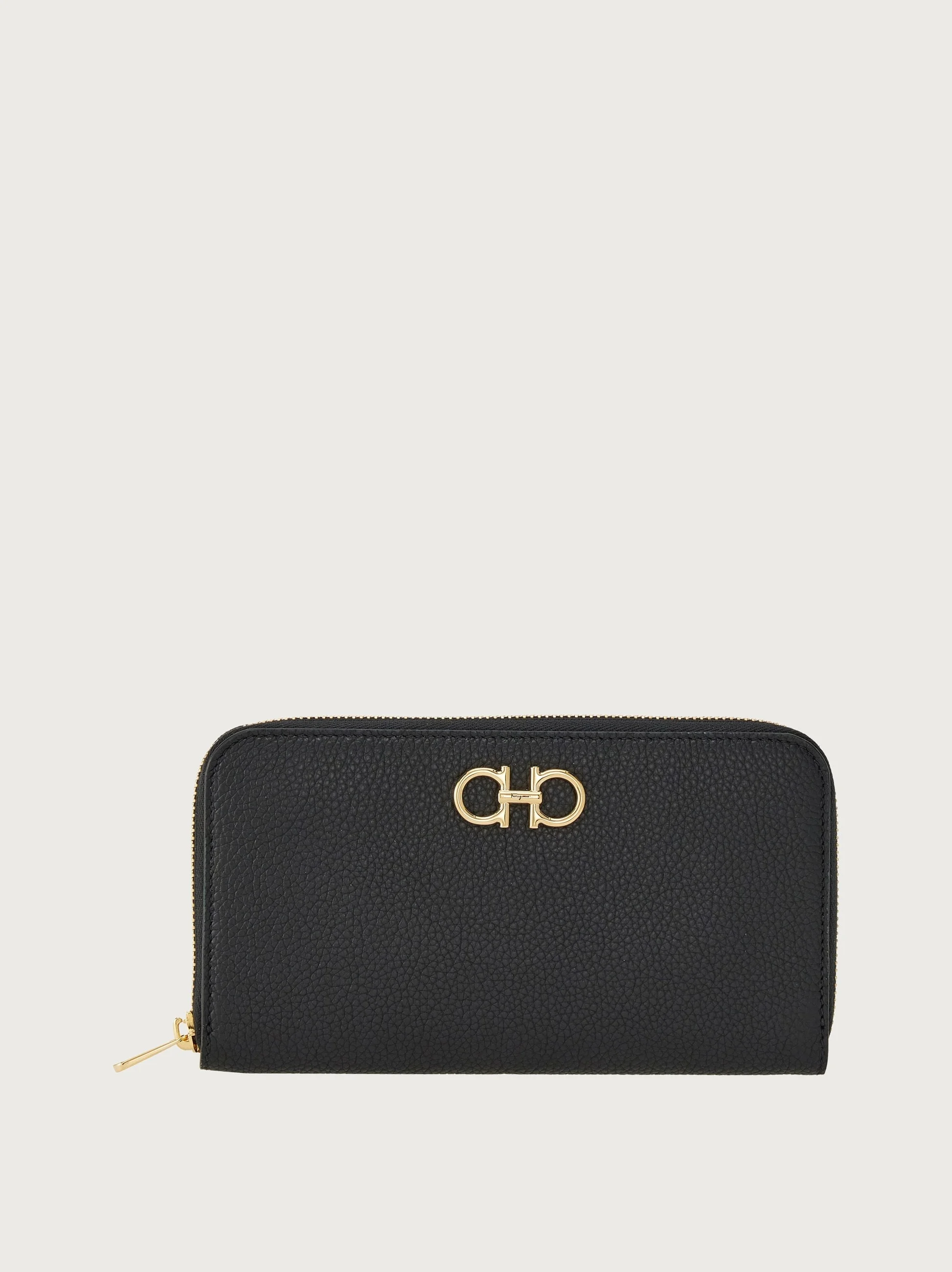 Spacious and elegant in equal measure: the continental wallet is roomy and organized, with slots for banknotes, cards and documents and a compartment for coins. Made of soft calf leather, it features the iconic Gancini outline on the front in a golden finish. - height 4.1 IN length 7.4 IN - Composition: calfskin - 1 coin zip pocket, 8 card slots, 2 compartments, 2 pockets - Made in ITALY - Product code: 220405 758661