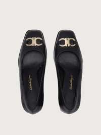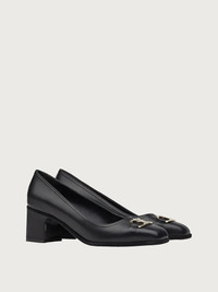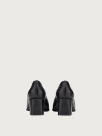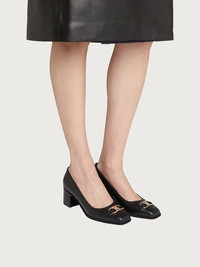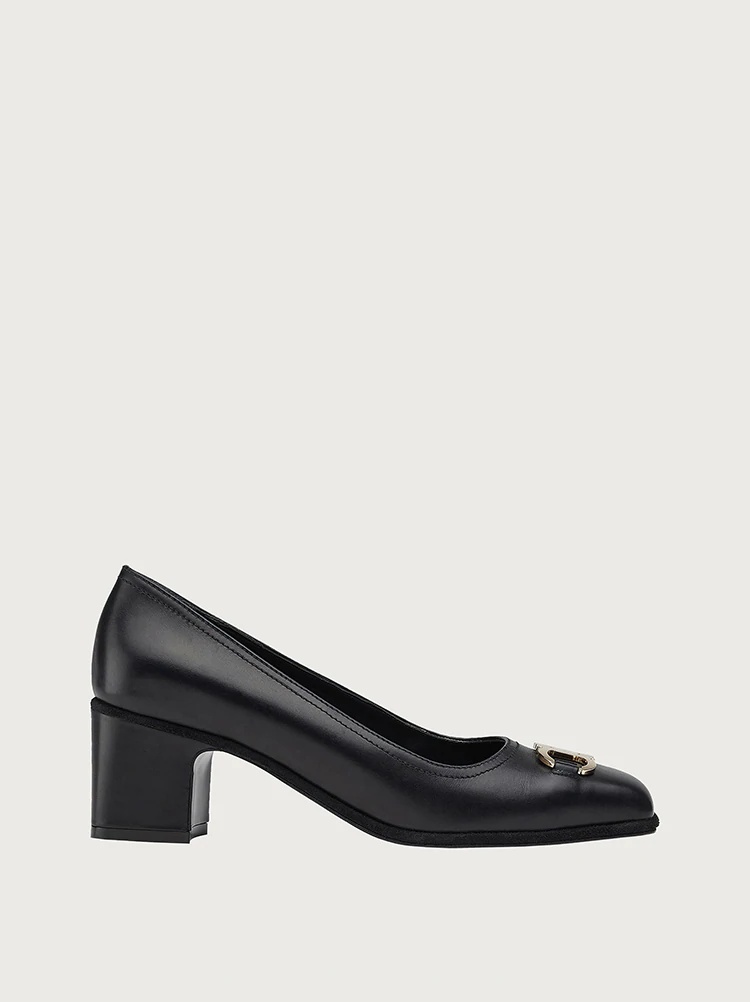 Modern day up town girl. This subtle statement shoe with square elements is made of soft calf leather. Both the Gancini buckle and the toe have a squared silhouette for a contemporary feel. Ferragamo leans their attention and expertise to comfort with the leather and suede layered insole. A cushion effect supports the foot for all day comfort without compromising style. Wear with trousers for a business look or skirts for a more refined effect. - Heel 5.5cm - Composition: Calf leather - Made In ITALY