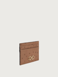 Compact, versatile, easy chic the credit card holder is the perfect ally to keep your essentials close at hand. This chic little space saver is made of hammered calf leather and decorated with an antique gold Gancini on the front for an exclusive finish. - height 2.7 IN width 4.1 IN - Composition: ostrich - 5 card slots - Made in ITALY - Product code: 220344 760281