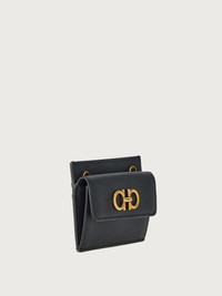 Compact, functional and cool: the credit card holder is a sleek and practical accessory for the lady who means business. Made of soft, calf leather, it features the iconic Gancio on the front flap in an antique golden finish, and has a golden chain for hands free wear. Slits on both sides and a central flat pocket. - Composition: calf leather - Made In ITALY