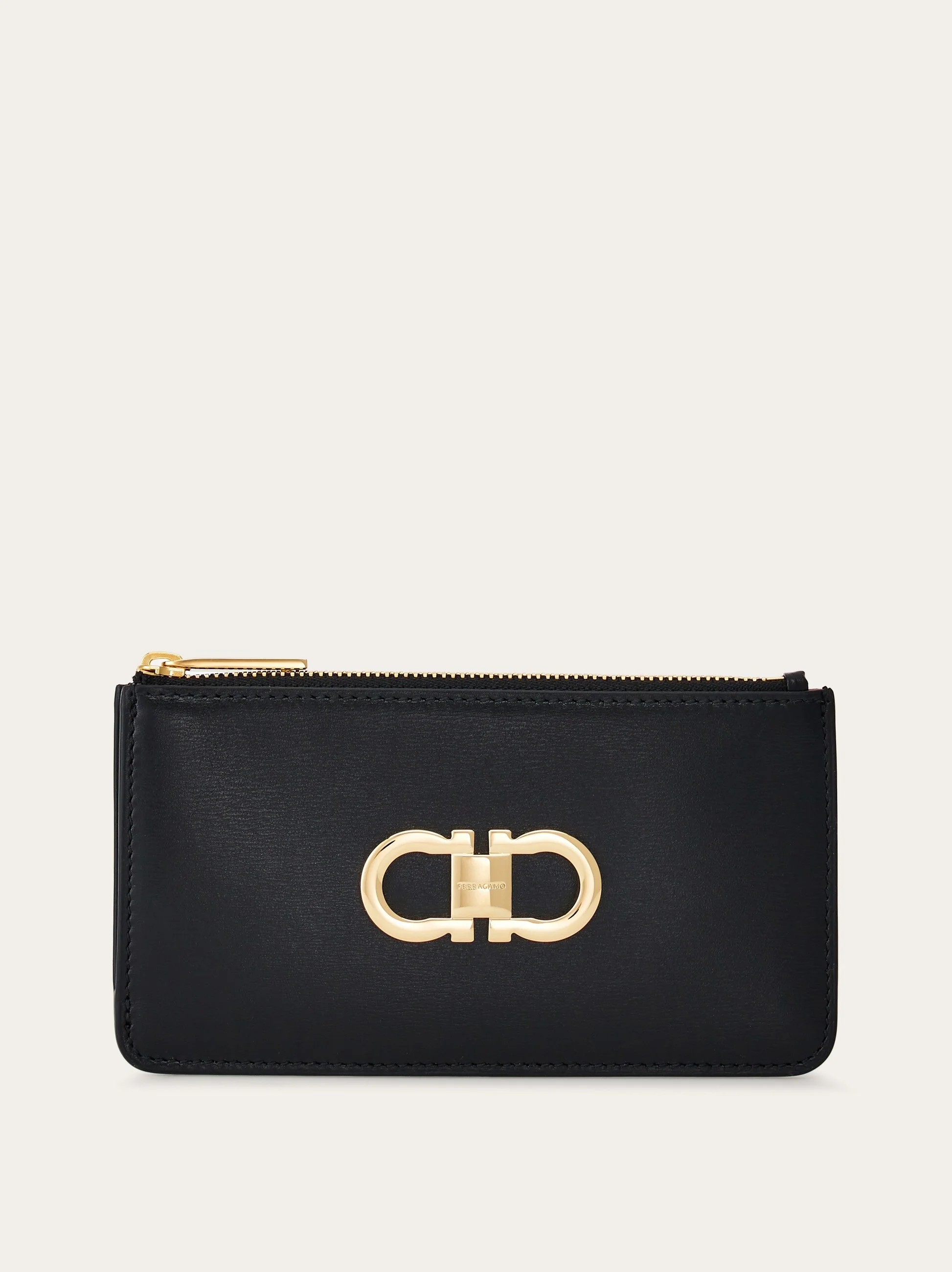 New cool and metropolitan proposal for the Ferragamo signature credit card holder: crafted in palmellato calfskin, it features an asymmetric flap at the front adorned with an engraved F boule. Compact yet spacious, it offers both interior and rear space with slots and a zip pocket along the edge. - height 3.5 IN length 5.9 IN width 0.3 IN - Composition: palmellato calfskin - 1 card slot, 6 external card slots, 1 compartment - Made in ITALY - Product code: 220629 770767