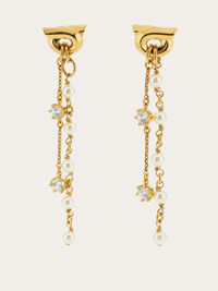 A contemporary, light-catching design defines this stud earring, featuring a golden Gancini silhouette that rests on the lobe. The double asymmetric pendant sways gently with movement, adorned with crystals and Cristal Core glass pearls—renowned for their elegant brilliance and scratch-resistant finish. - Composition: brass and crystals - Made in ITALY - Product code: 760929 790662