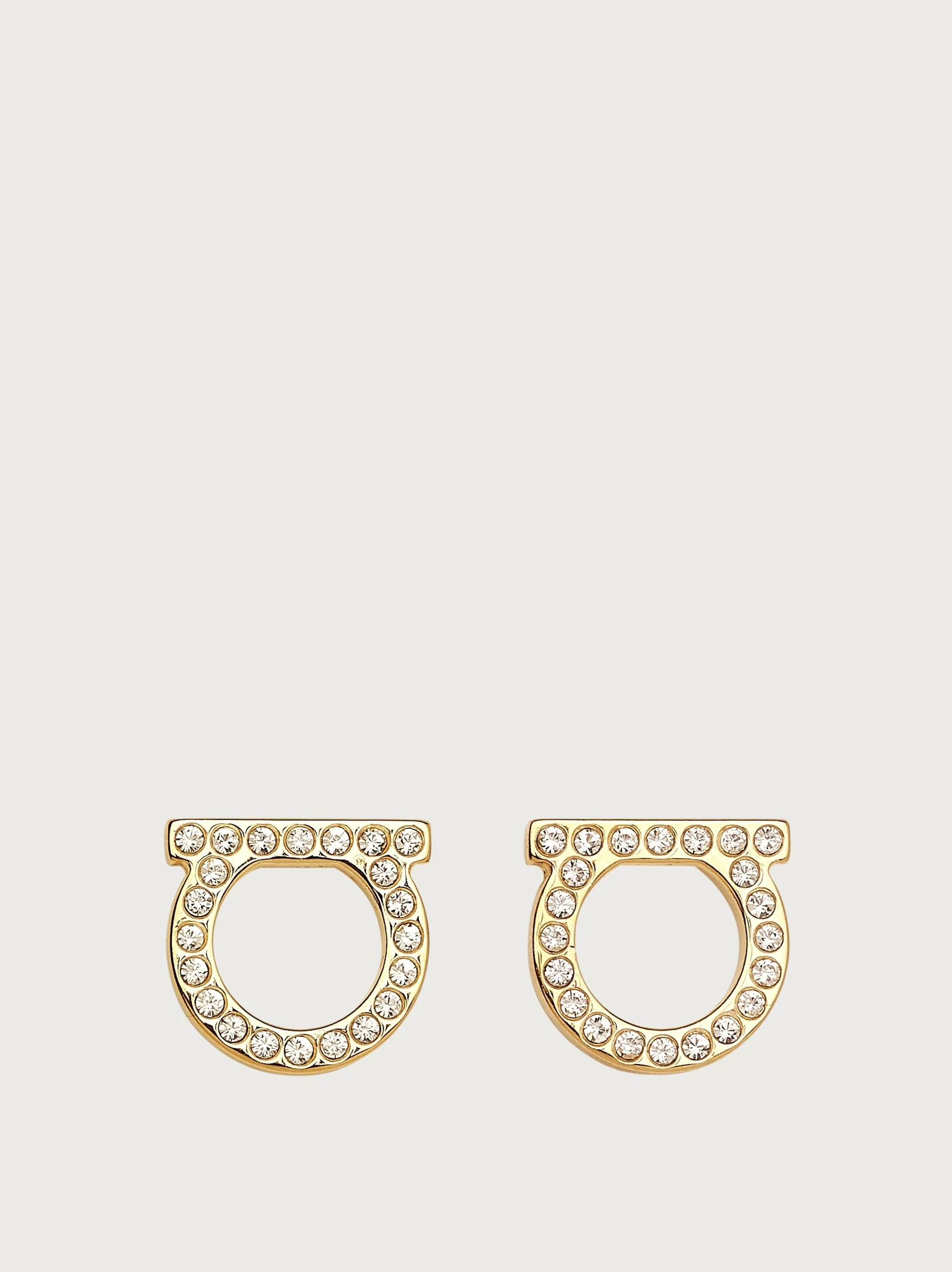 These earrings feature the iconic Gancini in gold-tone brass adorned with mini crystals for a glam chic finish. Height 11,6 mm, width 12,2 mm. - Composition: brass and glass - Large - Made in ITALY - Product code: 760122 696573