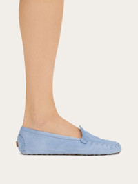 Comfy and cool with a preppy twist, this calfskin suede loafer is ideal for off duty looks. The three dimensional Gancio on the vamp and hand-stitched trimmed edge is a hallmark of the skilled workmanship for which Ferragamo is world renowned. Flexible rubber sole with custom tread. - Composition: calfskin suede - Made in ITALY - Product code: 01K908 790613