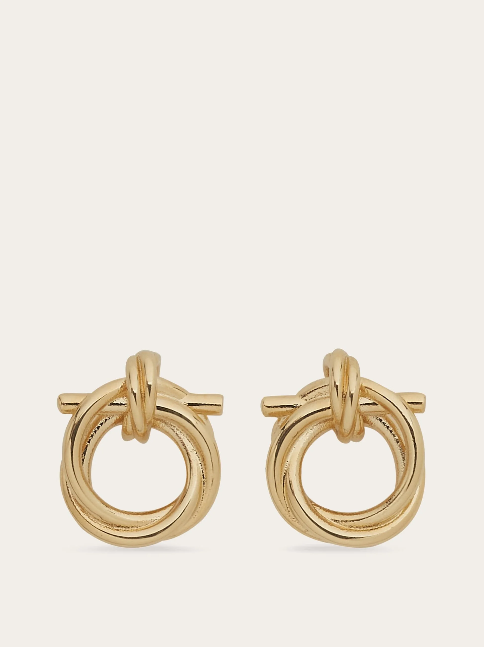 The brand’s most iconic silhouette becomes the shape of these golden brass earrings. The double loop with twisted aesthetic adds richness and elegance to the design. - Composition: brass - Made in ITALY - Product code: 760671 765593
