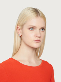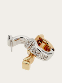 The Gancio stud line of bijoux earrings is contemporary, cool, and simply iconic. Perfect to add a touch of glam to your looks, the Gancio outline is made of brass with a golden finish on one half and palladium finish on the other. Tonal crystals are applied to the palladium side for an extra flash of glamour. All Ferragamo jewelry is hypoallergenic and nickel free. - Composition: brass and glass - Made in ITALY - Product code: 760582 755756