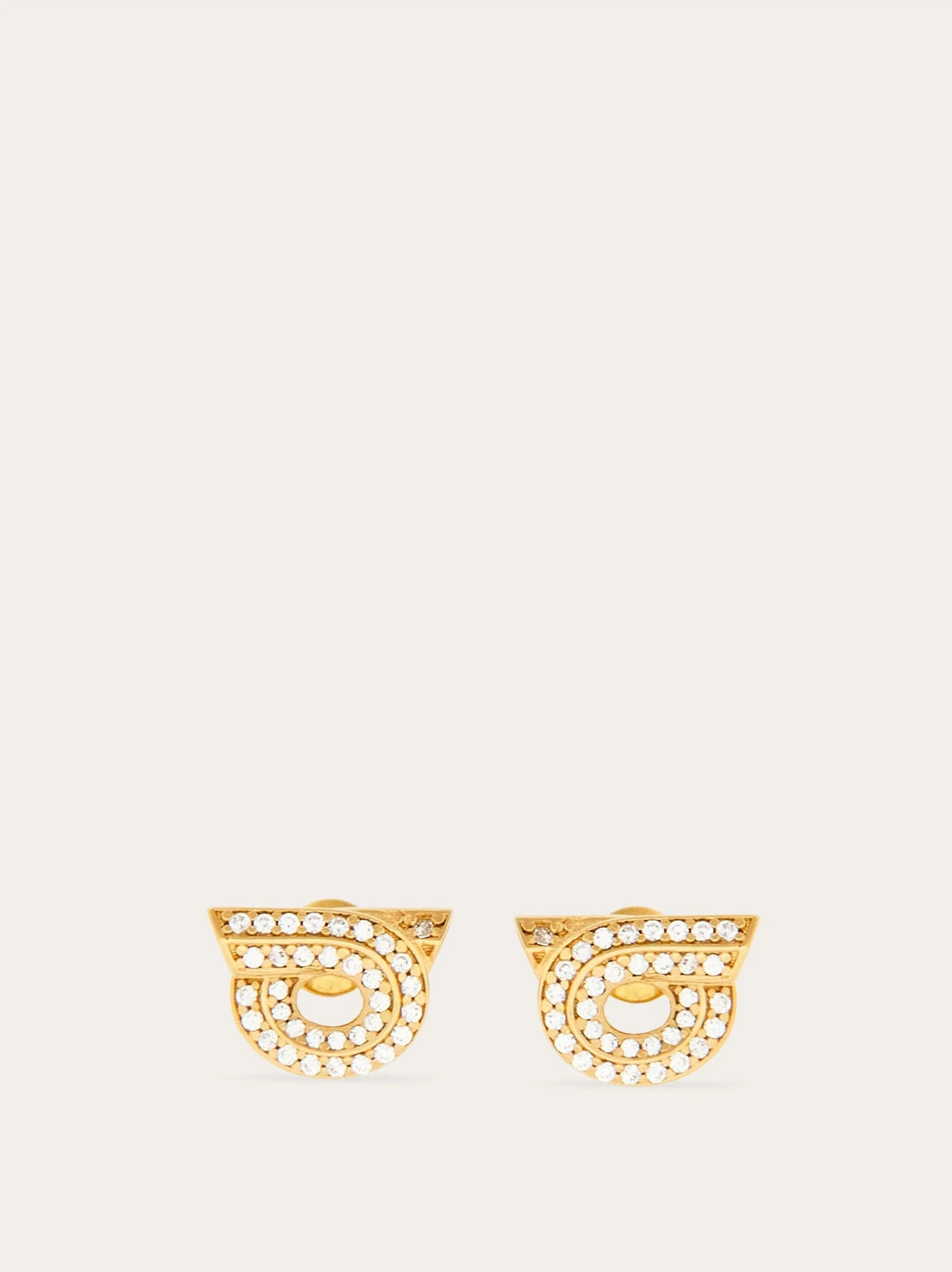 A new take on the Ferragamo earrings, boasting sinuous lines that create the Gancini silhouette. The crystal pave adds a sparkling touch, for a glamorous edge to all your looks. - Composition: brass and glass - Size 14 - Made in ITALY - Product code: 760699 770433