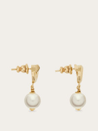 This earring features contemporary lines adorned with a romantic pearl note. The Gancini silhouette has a fluid stroke and triangular profile, making it a perfect accessory for refined day looks. - Composition: brass and synthetic pearl - Made in ITALY - Product code: 760780 776601