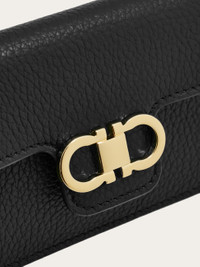 A handbag essential, this key holder takes inspiration from classic menswear designs, featuring a grained calfskin exterior and a double Gancini detail on the closure. Inside, a metal chain and key ring offer practical storage, while a small card slot adds extra functionality. - height 3.1 IN length 4.3 IN width 0.7 IN - Composition: hammered calfskin - Made in ITALY - Product code: 220963 785795