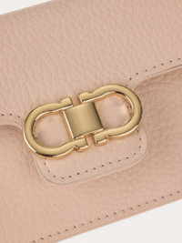 A handbag essential, this key holder takes inspiration from classic menswear designs, featuring a grained calfskin exterior and a double Gancini detail on the closure. Inside, a metal chain and key ring offer practical storage, while a small card slot adds extra functionality. - height 3.1 IN length 4.3 IN width 0.7 IN - Composition: hammered calfskin - Made in ITALY - Product code: 220963 786623
