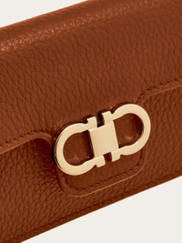A handbag essential, this key holder takes inspiration from classic menswear designs, featuring a grained calfskin exterior and a double Gancini detail on the closure. Inside, a metal chain and key ring offer practical storage, while a small card slot adds extra functionality. - height 3.1 IN length 4.3 IN width 0.7 IN - Composition: hammered calfskin - Made in ITALY - Product code: 220963 785796