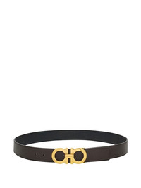 Gancini leather belt Highlights - Dark brown - Leather - Gold-tone buckle - Reversible - Punched holes Made in Italy Composition Calf Leather 100%