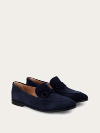 Effortlessly cool, decidedly Ferragamo, this new almond-toe loafer comes in luxurious, kidskin suede with a soft handfeel. Inspired by the classic gent's slip on, revised in a graceful creative key, it features a raised Gancini buckle and custom rubber sole. - Composition: suede kidskin - Made in ITALY - Product code: 01L433 792006