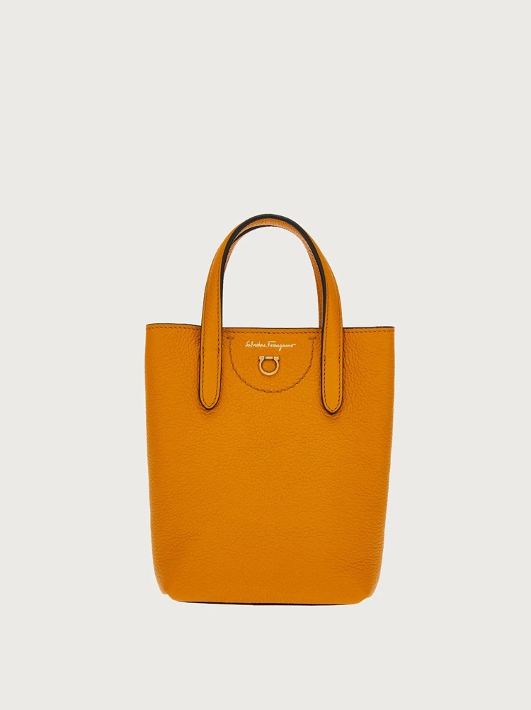 High end materials and an enticing color palette. This beautiful mini bag is made from Italian calf leather, tumbled in barrels to enhance its natural grain. The effect is the perfect backdrop for the bold seasonal hues, to light up your ensemble. Inside, the lining is covered in an all over Gancini pattern, confirming its iconic status. Carry by hand or cross body with the removable strap. - Composition: calf leather - Made In ITALY