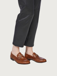 Elegant, elongated loafers in soft calfskin. The collapsible heel construction also allows them to be worn as mules. The stitched apron toe and the golden Gancini accent complement the design. - Composition: calfskin - Made in ITALY - Product code: 01E100 758467
