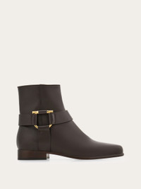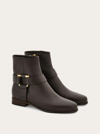 The biker boot with iconic details, Ferragamo style. Featuring a golden Gancio buckle at the ankle that holds the clean cut leather straps, this soft calfskin ankle boot has a contemporary attitude. A hidden zip on the inside of the ankle ensures a glove-like fit. Leather sole. - Composition: calfskin - Made in ITALY - Product code: 01J343 779865