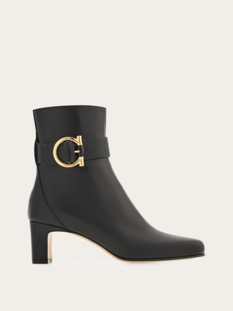 The biker boot with iconic details, Ferragamo style. Featuring a golden Gancio buckle at the ankle that holds the clean cut leather straps, this soft calfskin ankle boot has a contemporary attitude. A hidden zip on the inside of the ankle ensures a glove-like fit. Leather sole. - Composition: calfskin - Made in ITALY - Product code: 01J343 779864