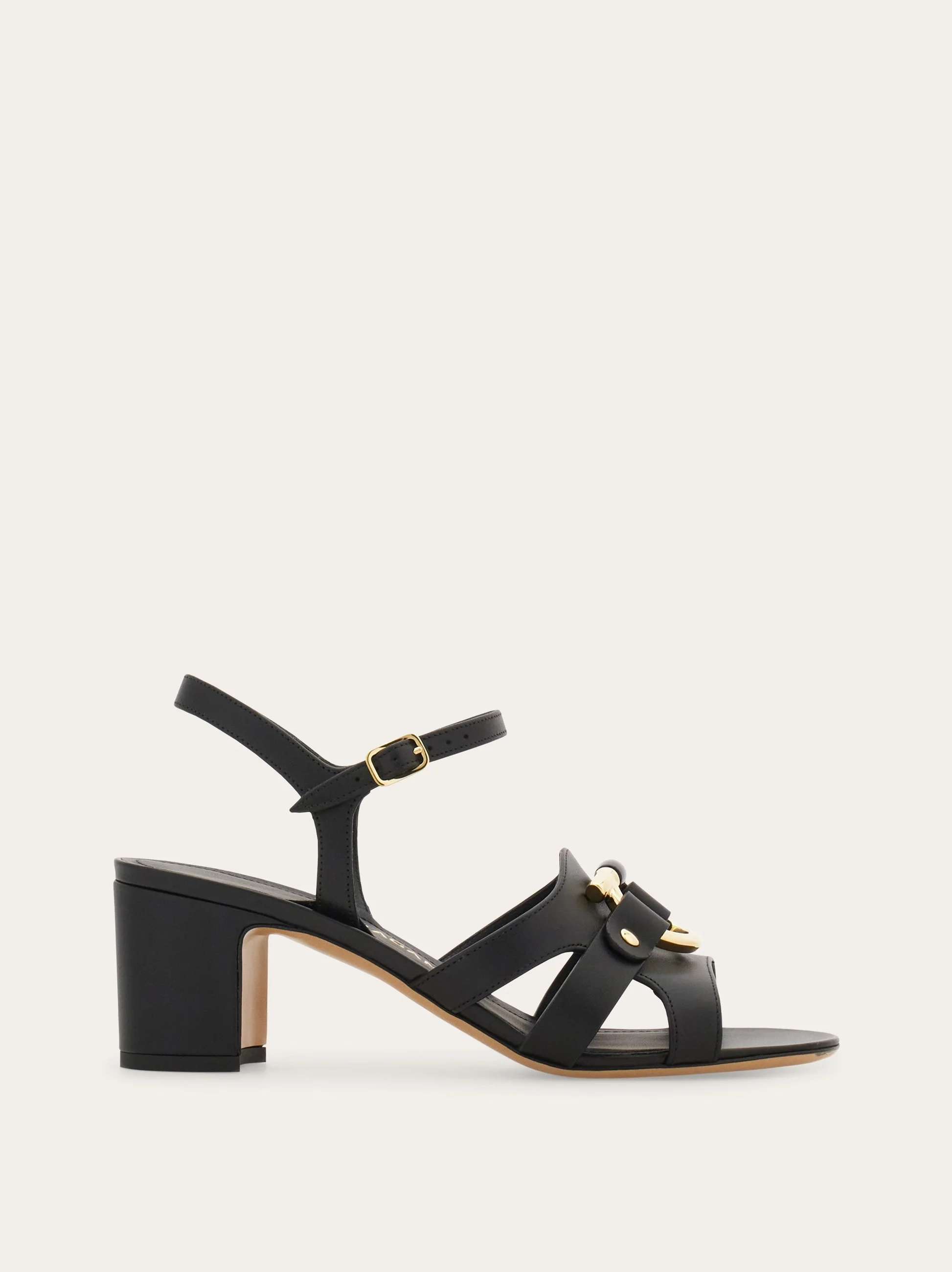 The block heel and Y-shaped ankle strap ensure the sturdy fit of this cool, contemporary sandal. With straps across the toes that hold a golden Gancio, she is as glam as she is comfortable, and completed by a tonal covered heel. - Composition: calfskin - Made in ITALY - Product code: 01L748 793602