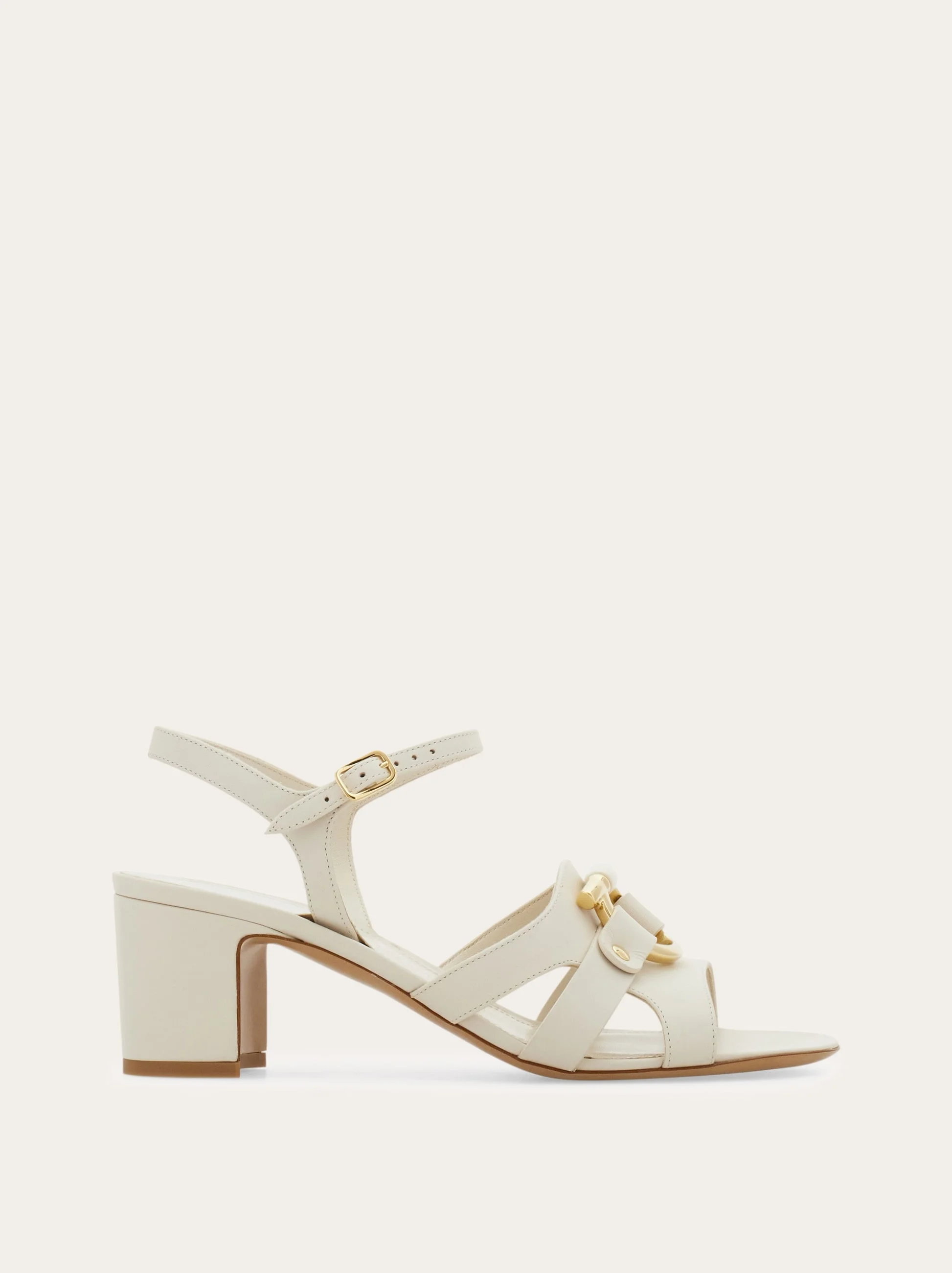 The block heel and Y-shaped ankle strap ensure the sturdy fit of this cool, contemporary sandal. With straps across the toes that hold a golden Gancio, she is as glam as she is comfortable, and completed by a tonal covered heel. - Composition: calfskin - Made in ITALY - Product code: 01L748 793603