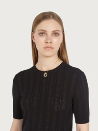 This Gancini-silhouette pendant necklace is crafted from an interwoven strand adorned with crystals. Sparkling and iconic, it is perfect for adding some sparkle to the neckline. All Ferragamo jewelry is nickel free and hypoallergenic. - Composition: brass and crystals - Made in ITALY - Product code: 760609 758563