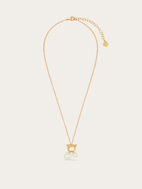 Fine brass mesh necklace with gold bath, completed with clasp fastening and a small pendant. The Gancini with a geometric profile holds two glass pearls in different sizes, which are mobile and sway when moved. - length 16.5 IN - Composition: 70% brass and 30% glass - Made in ITALY - Product code: 760806 780390