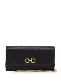 black calf leather pebbled texture Gancini plaque foldover top with press-stud fastening detachable chain-link shoulder strap internal logo stamp partitioned compartment internal zip-fastening pocket internal card slots - height: 10.5 centimetres, length: 19.0 centimetres, width: 3.5 centimetres - Color: BLACK - Made in: Italy - Designer Style ID: 220636 0770374 NERO Composition and care Outer Composition Calfskin: 100.0%, Lining Composition Calfskin: 60.0%, Lining Composition Fabric: 40.0%