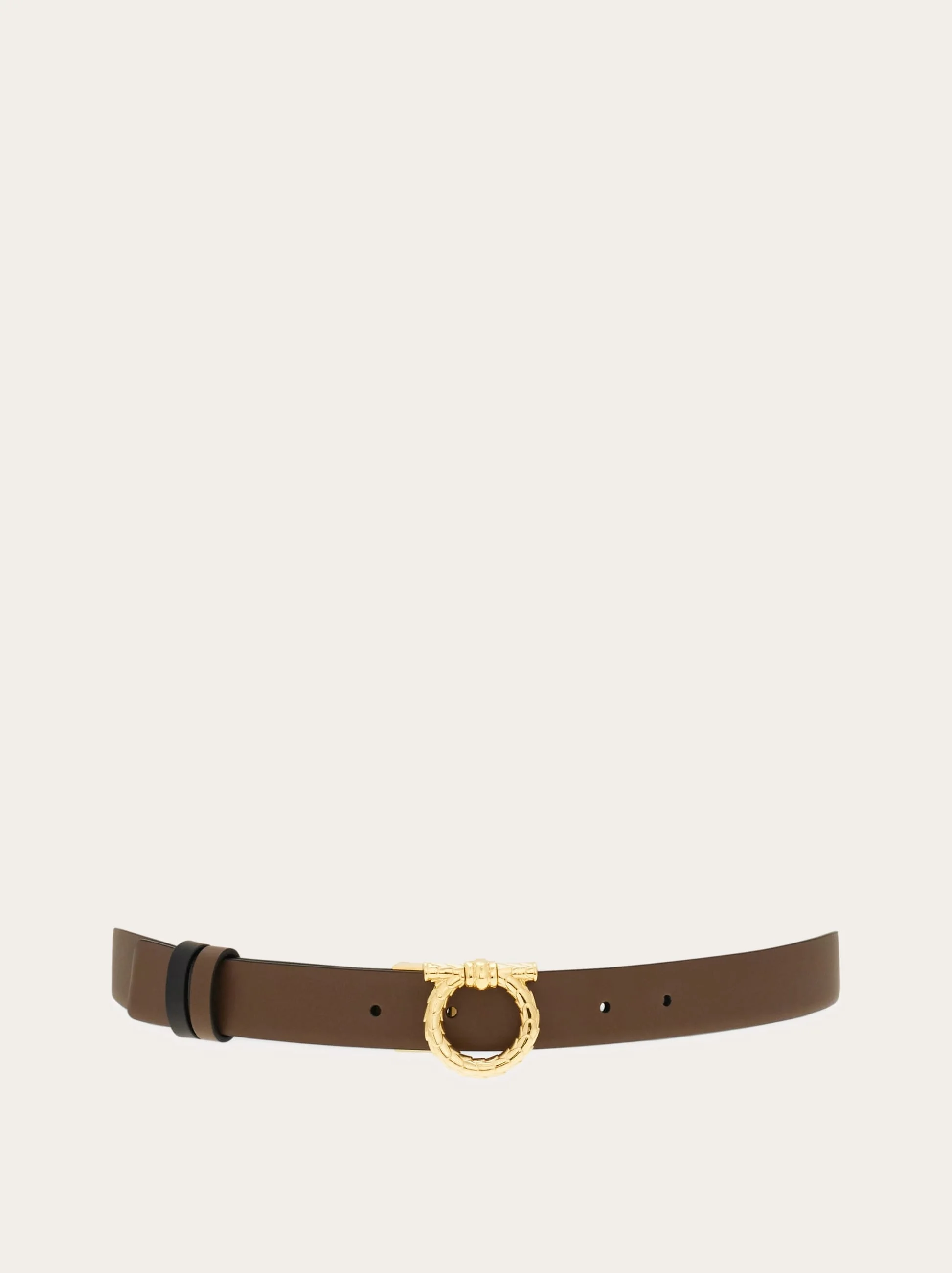 The scaly texture of the single Gancini buckle gives this calfskin belt a sophisticated appeal. The leather has a natural grainy finish, and different colors on each side, in the same tones as the double loop. The adjustable length allows for a more personalized fit and style. We invite you to check our size guide for more information. - height 0.9 IN - Composition: calfskin - Made in ITALY - Product code: 230372 780475
