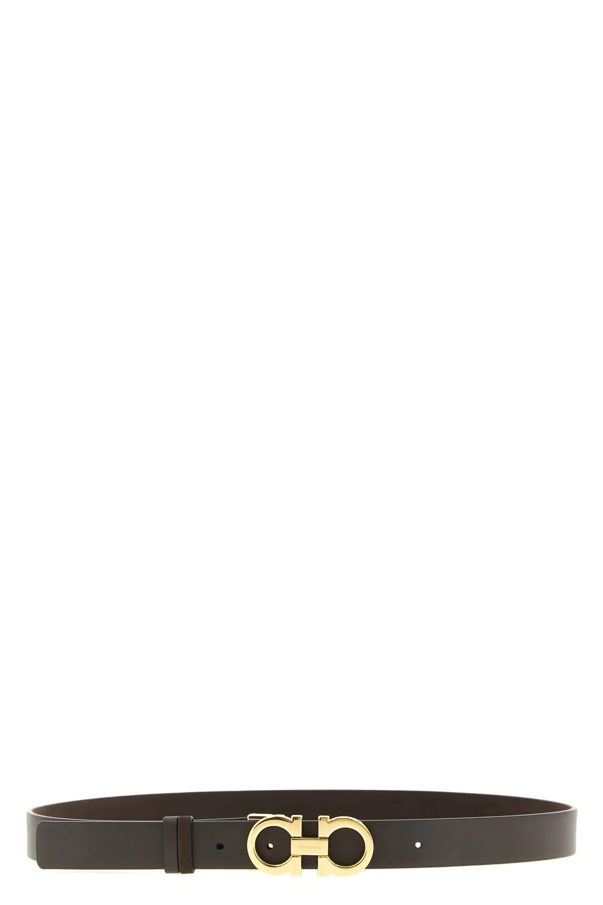 cod. 789990TESTADIMORO Reversible leather belt with metal buckle 'Gancini' Color: Brown Size & Fit: h 2.5 cm Composition: 100% calfskin leather (Bos Taurus) Made in: Italy