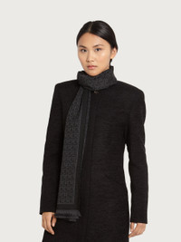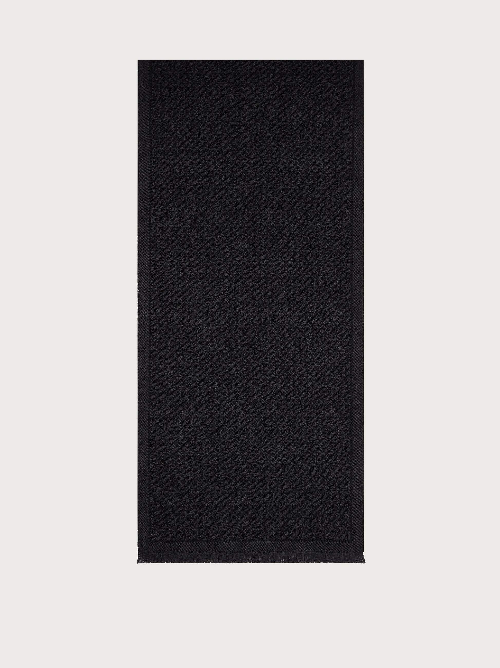 A great classic with a contemporary look, the Gancini pattern in jacquard, decorates this scarf with small fringes. The extra long new dimension makes it a versatile accessory, to wrap around your neck on the coldest days for city slicking or relaxing in the countryside. - length 70.8 IN width 18.8 IN - Composition: 100% wool - Made in ITALY - Product code: 327955 718386
