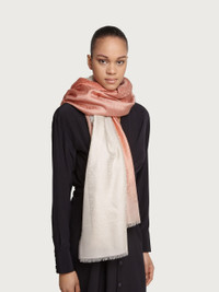 Creative exploration of Ferragamo's most exclusive icons: this generously sized shawl is made in a blend of wool and silk jacquard with Gancini pattern. The delicate degrade effect adds a sophisticated chromatic detail, with an exclusive elegance. - length 55.1 IN width 55.1 IN - Composition: 75% silk and 25% wool - Made in ITALY - Product code: 320299 747033