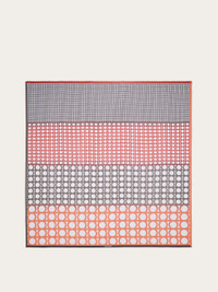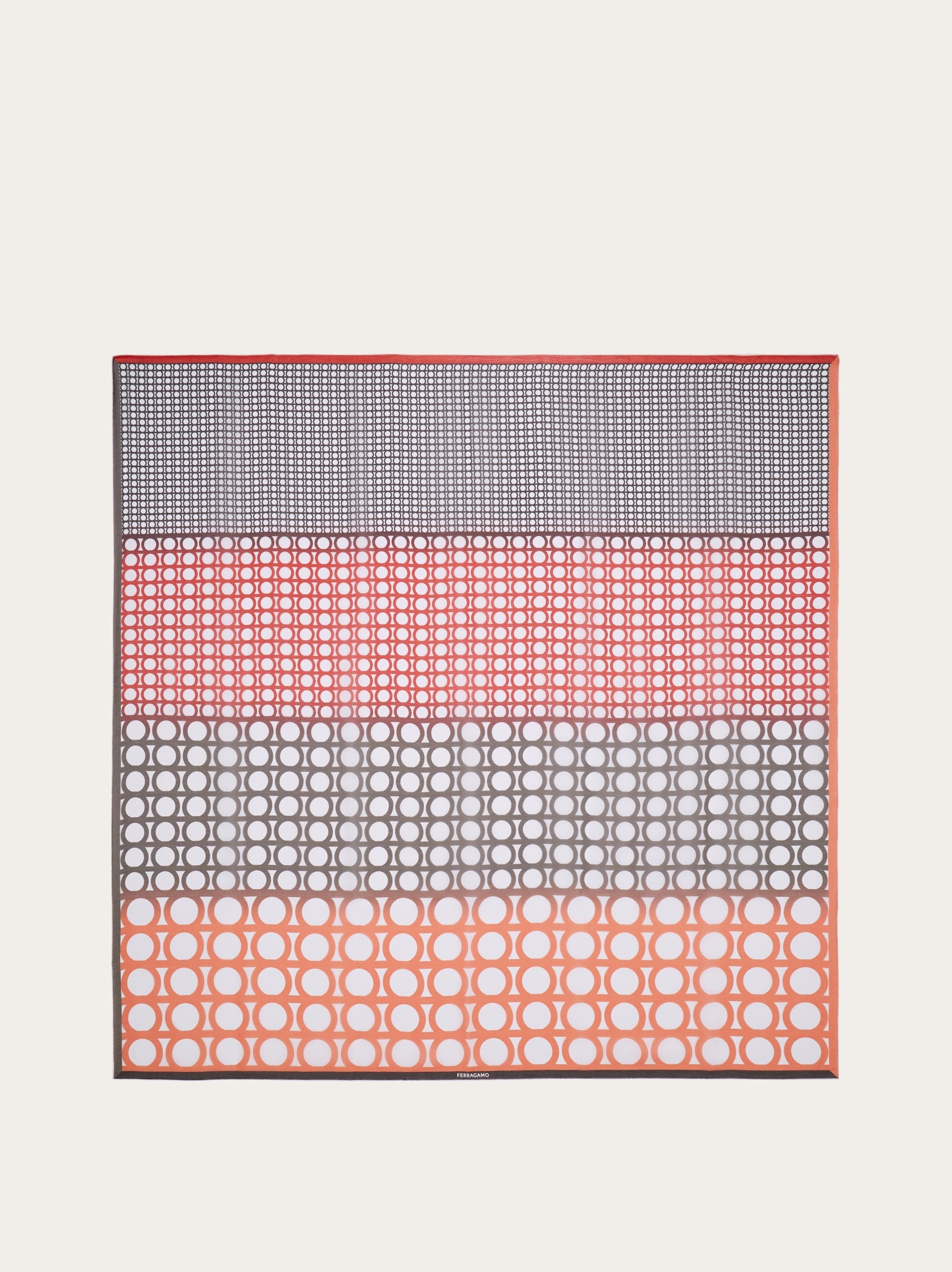 A mix of Gancini-themed patterns adorn this shawl in lightweight pure silk crepe. Matching tones and contrasting textures with a degrade effect create a feminine and contemporary appeal. - length 55.1 IN width 55.1 IN - Composition: 100% silk - Made in ITALY - Product code: 320995 783668