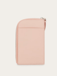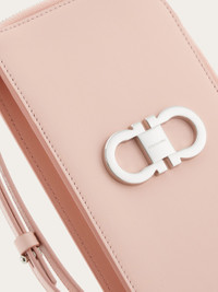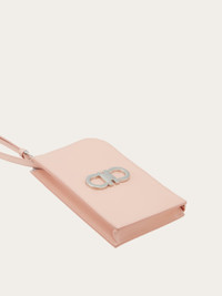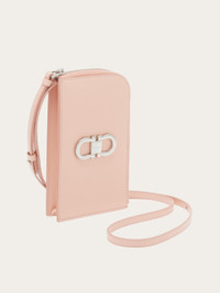 Crafted in palmellato calfskin, this smartphone holder combines functional lines with a refined design. The zip-around opening on two sides and the contrasting interior color make it a true must-have for hands-free movement all day long. This model is completed with internal slots, a flat back pocket, and a front Gancini ornament with palladium finish. - height 7.4 IN length 4.7 IN width 0.9 IN - Composition: palmellato calfskin - 3 pockets, 2 compartments, 1 external pocket - Made in ITALY - Product code: 220628 770805