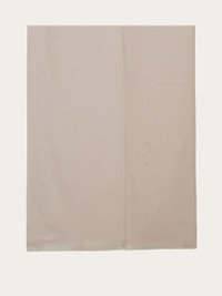 Light, soft and enveloping, this stole is the perfect complement for every moment of the day. The elegant jacquard woven Gancini pattern is finished off with a wide border with Ferragamo lettering. For refined styling with timeless style. - length 70.8 IN width 27.5 IN - Composition: 75% silk, 25% wool - Made in ITALY - Product code: 327987 725358