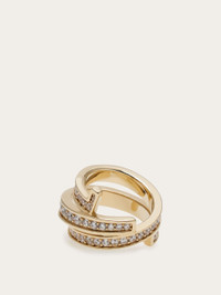 Triple-band ring with design details echoing the Gancini silhouette. The entire upper section is embellished with pave-set micro crystals for a refined sparkle. - Composition: 60% brass and 40% crystals - Size 52 - Made in ITALY - Product code: 760910 788401
