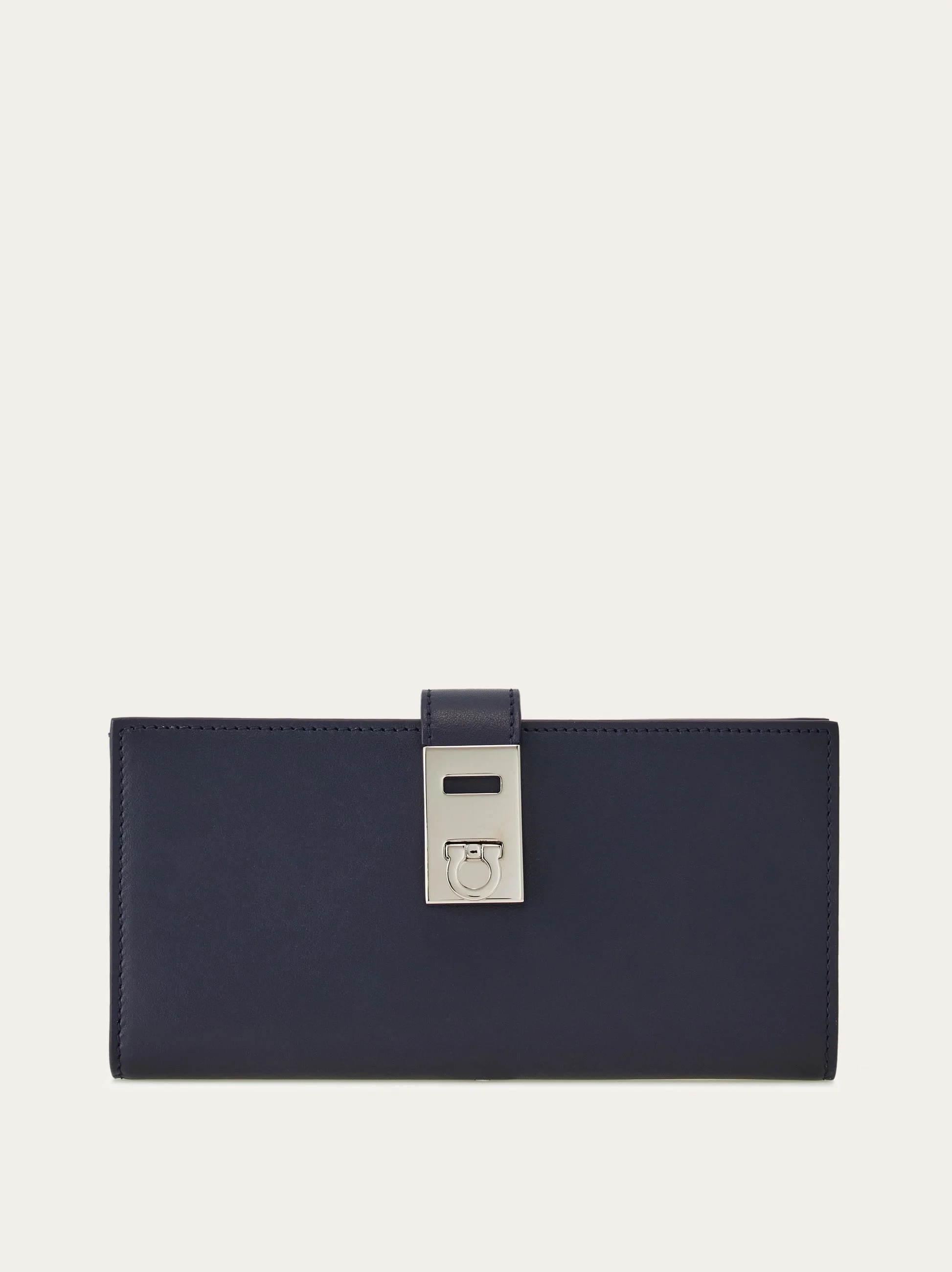 Spacious, roomy, and elegant: the continental wallet is crafted in smooth calfskin, with a contrasting interior and a Gancini closure inspired by the Hug collection. The slots, zip pocket, and compartments provide perfect organization for personal belongings. - height 3.7 IN length 7.2 IN width 0.7 IN - Composition: calfskin - Made in ITALY - Product code: 220522 785528