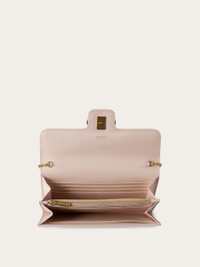 Effortlessly chic and endlessly versatile, this hammered calfskin wallet comes with a sleek chain, transforming it into a stylish mini bag. The contrast-color interior is designed for perfect organization, featuring card slots, bill compartments, and a central zipped pocket for coins. A gold-tone Gancini buckle on the front flap adds the perfect finishing touch. - height 4.7 IN length 8.2 IN width 1.3 IN - Composition: hammered calfskin - Made in ITALY - Product code: 220981 791903