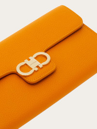 Effortlessly chic and endlessly versatile, this grained calfskin wallet comes with a sleek chain, transforming it into a stylish mini bag. The contrast-color interior is designed for perfect organization, featuring card slots, bill compartments, and a central zipped pocket for coins. A gold-tone Gancini buckle on the front flap adds the perfect finishing touch. - height 4.7 IN length 8.2 IN width 1.3 IN - Composition: hammered calfskin - Made in ITALY - Product code: 220981 785770