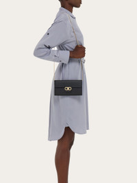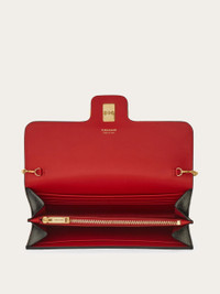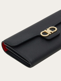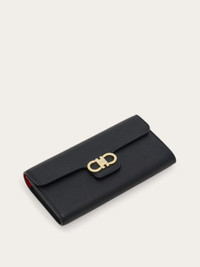 Effortlessly chic and endlessly versatile, this grained calfskin wallet comes with a sleek chain, transforming it into a stylish mini bag. The contrast-color interior is designed for perfect organization, featuring card slots, bill compartments, and a central zipped pocket for coins. A gold-tone Gancini buckle on the front flap adds the perfect finishing touch. - height 4.7 IN length 8.2 IN width 1.3 IN - Composition: hammered calfskin - Made in ITALY - Product code: 220981 785769