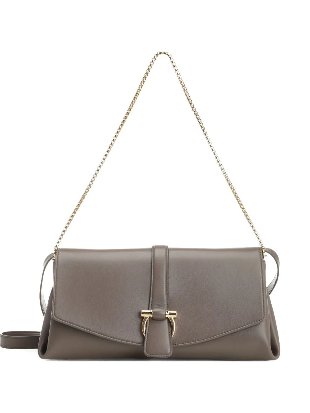 chain-strap flap shoulder bag Highlights - Grey - Leather construction - Flap closure - Chain strap - Gold-tone hardware - Gancini detail - Please refer to the size & fit tab to learn more about this item's dimensions. Made in Italy Composition Lambskin 100% SIZE & FIT Measurement DEPTH 4.72 in(12 cm) HEIGHT 5.9 in(15 cm) WIDTH 12.59 in(32 cm)