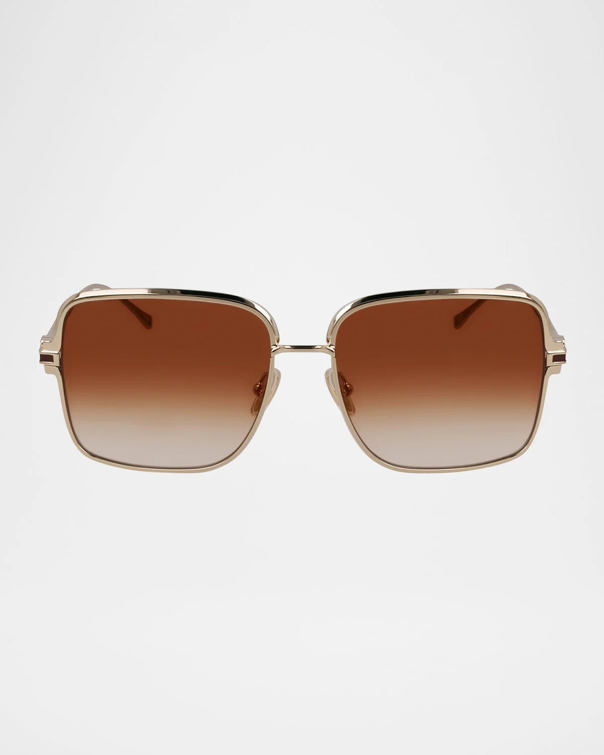 - Ferragamo square sunglasses in metal - Lens/bridge/temple (in mm): 57-16-140 - Gradient lenses - Adjustable nose pads - Gancino ornament that integrates the hinge - Thin, tapered arms - Universal fit - Wipe clean - 100% UVA/UVB protection - Made in Italy - Proposition 65 warning for California residents