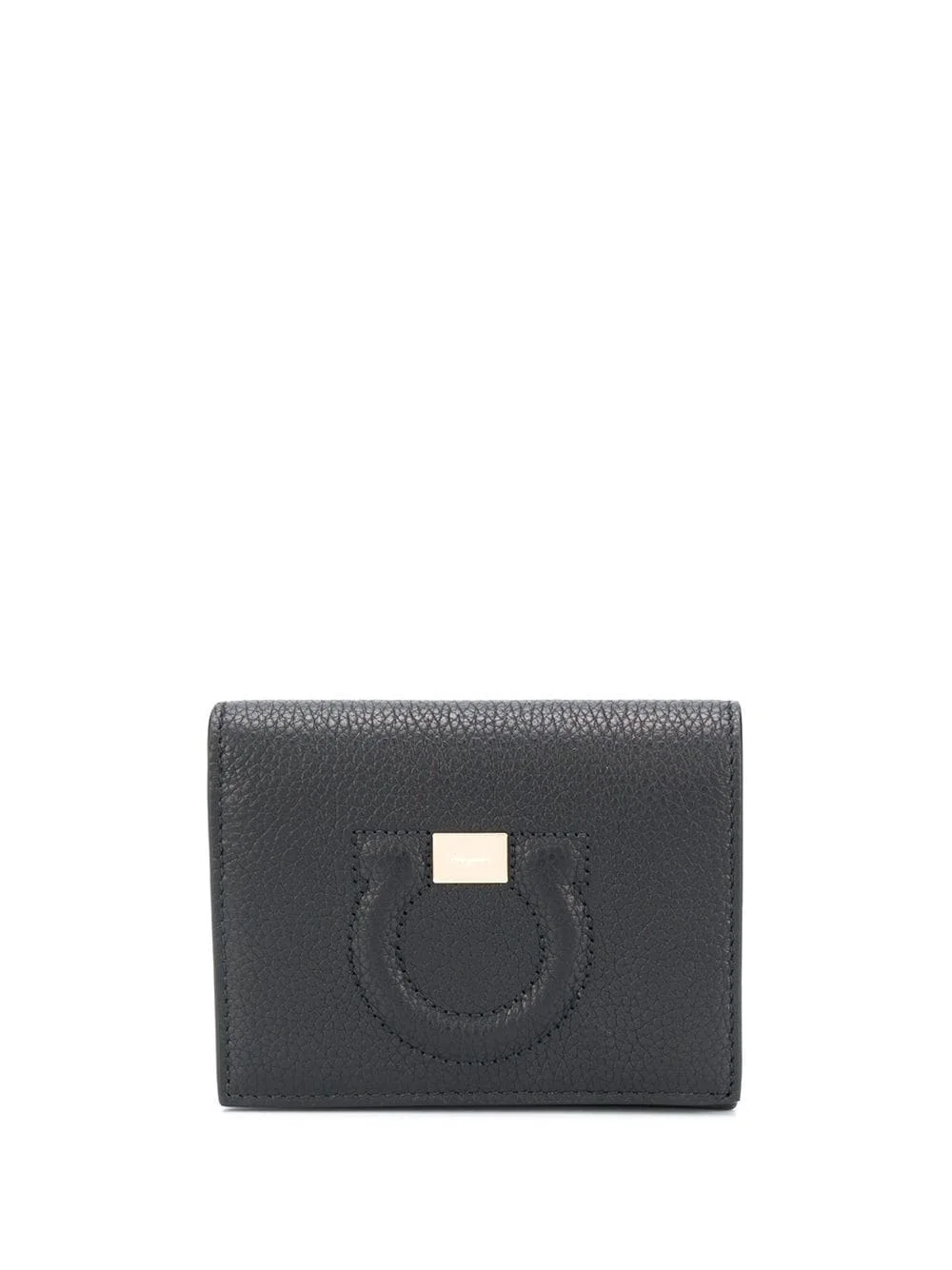 embossed Gancini motif grainy wallet Going out but need a decent wallet? The Gancini motif on this Ferragamo one is probably your best option - did we mention it has plenty of space for you bank cards too? Keep it in mind. Highlights - Black - Calf leather - Grainy effect - Embossed detail - Engraved detail - Snap-button fastening - Internal card slots Made in Italy Composition Outer: Calf Leather 100% SIZE & FIT Measurement DEPTH 0.59 in(1.5 cm) LENGTH 4.33 in(11 cm) WIDTH 3.14 in(8 cm)