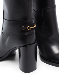 Gancio horsebit 85mm boots Strutting, walking, running, line-dancing, catwalking. These boots from Salvatore Ferragamo are capable of anything; capturing a sleek feel, this pair is sure to be a go-to in your collection this season. Off you go. Made in Italy Composition Outer: Leather 100% Sole: Leather 100%, Rubber 100% Lining: Leather 100% SIZE & FIT Model measurements Height 5 ft 11 in(1.8 m) Bust/Chest 31.49 in(80 cm) Hips 37 in(94 cm) Waist 25.98 in(66 cm) FittingInformation This piece fits true to size. We recommend you get your regular size Measurement CIRCUMFERENCE 13.77 in(35 cm) HEEL 3.74 in(9.5 cm) HEIGHT 11.02 in(28 cm) Sole height 0.39 in(1 cm)