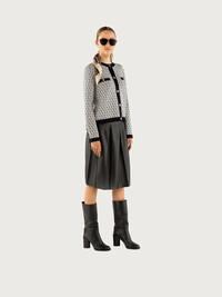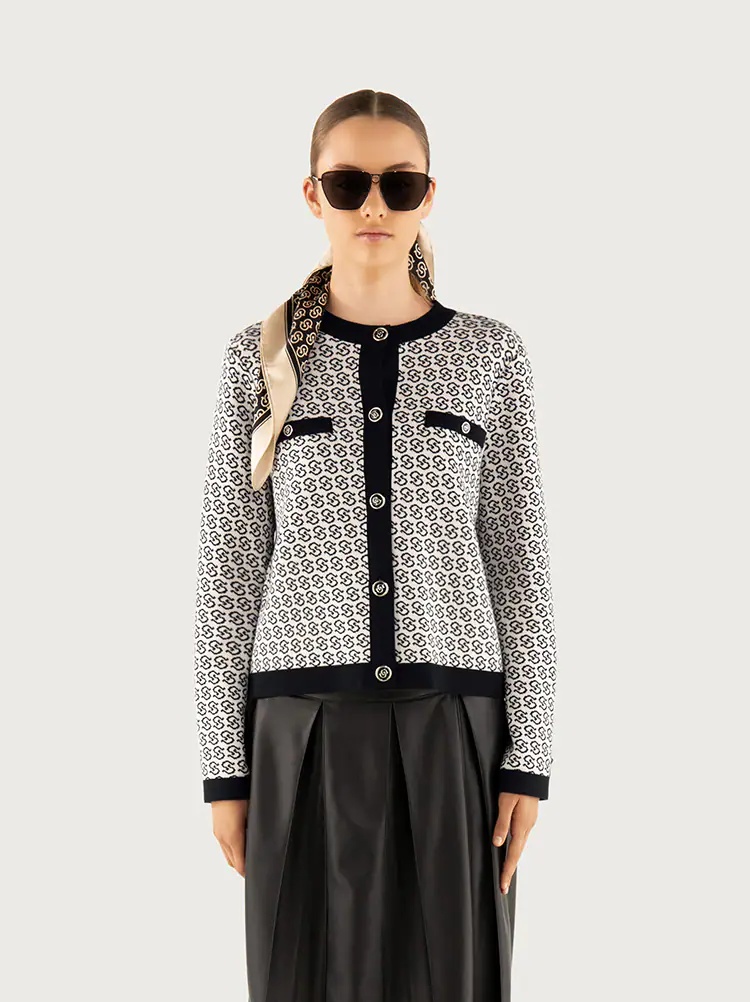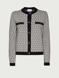A new modern classic. Throw this iconic knitted jacket over your look to add a contemporary chic touch. This pure wool knitted jacket is covered in the new Gancio S pattern, for a striking look. The contrasting borders, decorative pockets and the iconic Gancio S painted buttons are strong elements that add to its ladylike character. Model measurements: Height 5' 10 "/178 cm; Bust 32½"/82 cm; Waist 24"/60.5 cm; Hips 35½ "/90cm - Composition: 100% wool - Made In ITALY
