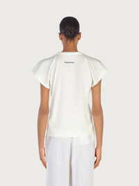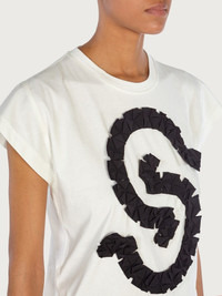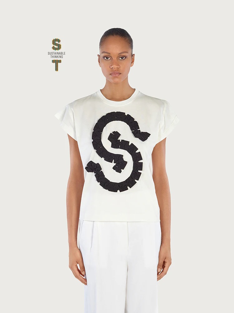 Simple, soft organic cotton certified to be cultivated and produced without chemicals, adorned with an iconic symbol for a slam dunk of a fashion statement. This crew-neck t-shirt has slightly dropped sleeves and a fabulous gros grain origami embroidered on the front to create the S Gancio logo. For true Brand lovers only. Model measurements: Height 5' 11½ "/181 cm; Bust 33½"/85 cm; Waist 25"/63 cm; Hips 35 "/89 cm - Composition: 100% certified organic cotton - Made In ITALY