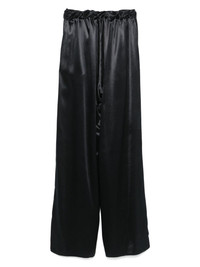 satin trousers Highlights - Black - Satin finish - Short front button fastening - Elasticated waistband - Gathered detailing - Two side inset pockets - Wide leg Made in Italy Composition Viscose 100%