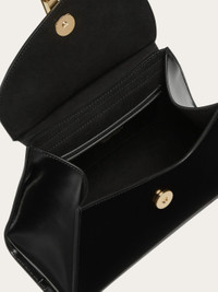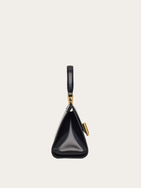 Vintage inspired with a contemporary feel, this new Ferragamo handbag is ladylike and full of character. The unique asymmetrical front flap adds fluidity to the rigid structure cut from soft calfskin with a semi-glossy finish, while the chic golden custom clasp on the front confirms a high end look. The roomy interior has flat pockets to keep personal effects organized. - height 20.0 CM / 7.8 IN length 24.5 CM / 9.6 IN width 10.0 CM / 3.9 IN - Composition: calfskin - Product code: 218341 770268 - Made in ITALY