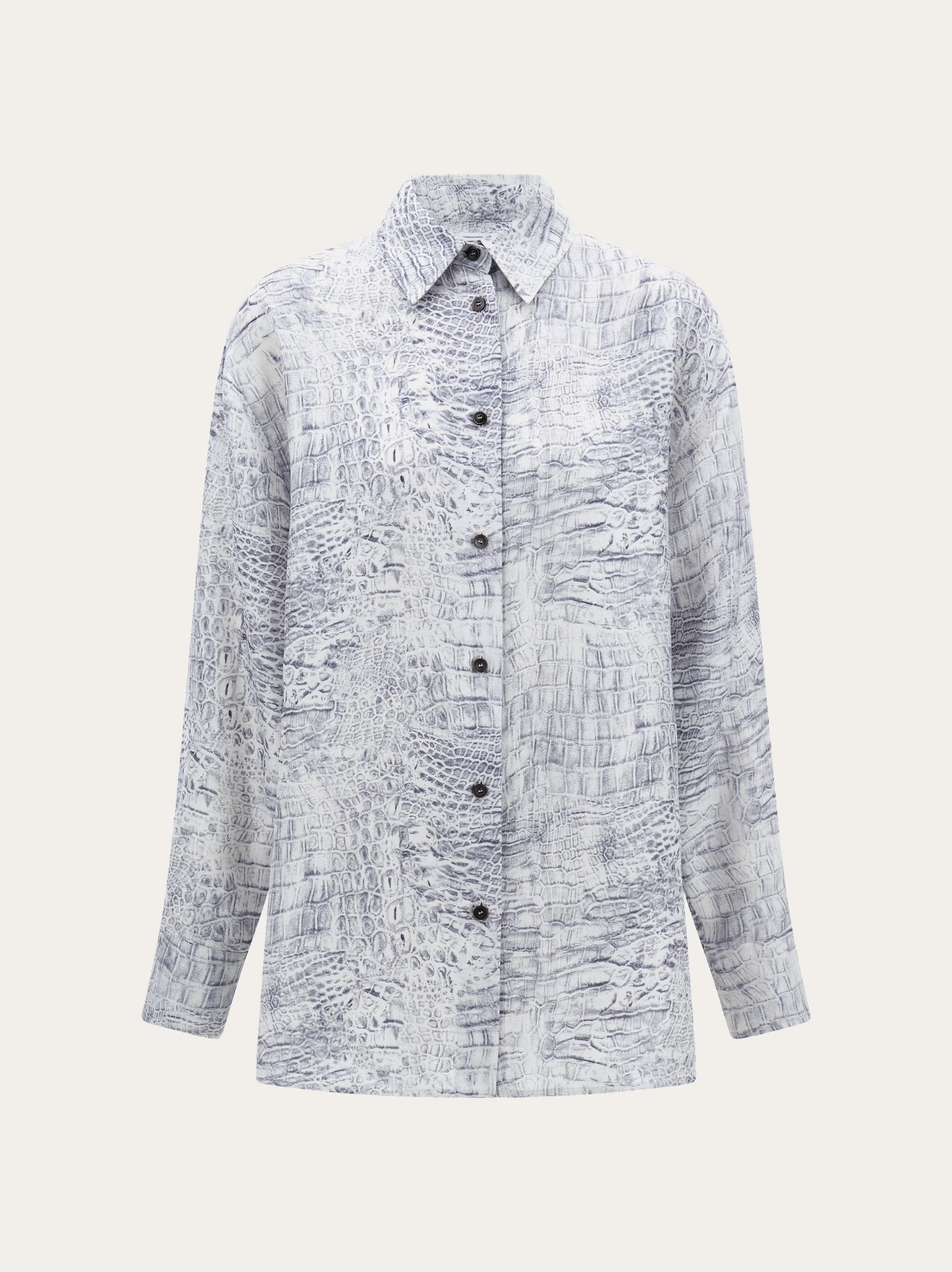 Lightweight and feminine, this smooth shirt is cut from pure silk georgette. Inspired by a Robert Mapplethorpe photograph of a tiger orchid, the unique print zooms in on the billowing flower, and captures its dynamic essence. The straight cut makes this piece extremely easy to wear. The main fabric of this garment is made entirely of pure organic silk. - Composition: 100% silk - Made in ITALY - Product code: 13H514 790949